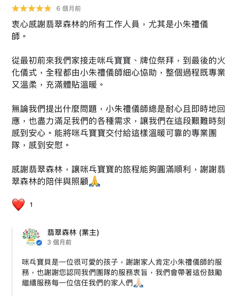 儀式圓滿後,禮儀師將提供: