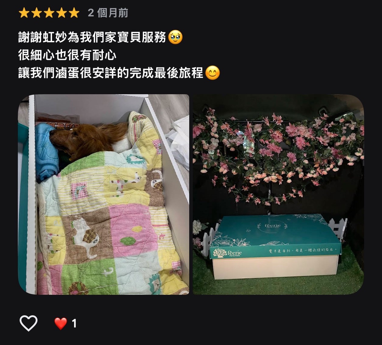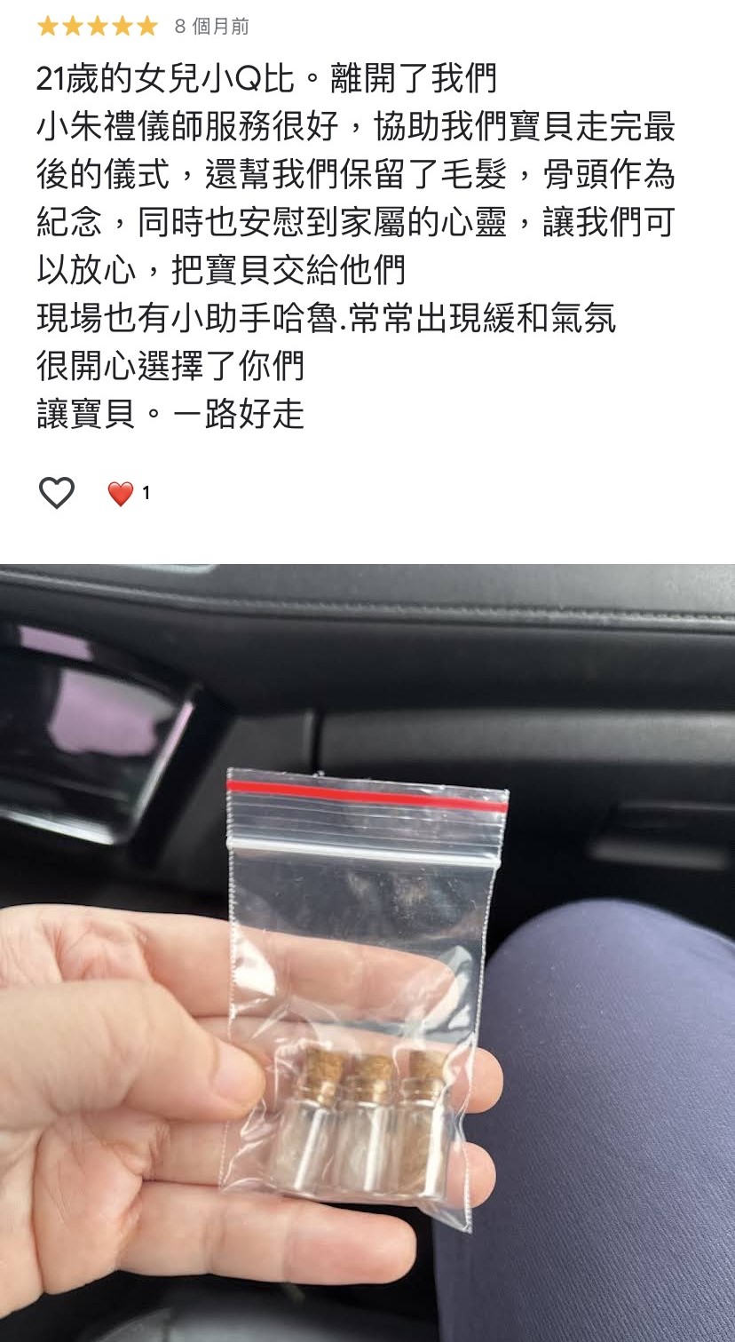 特色:可放在家中,量少、象徵毛孩陪伴在身邊形式自由、適合想留念的家庭
